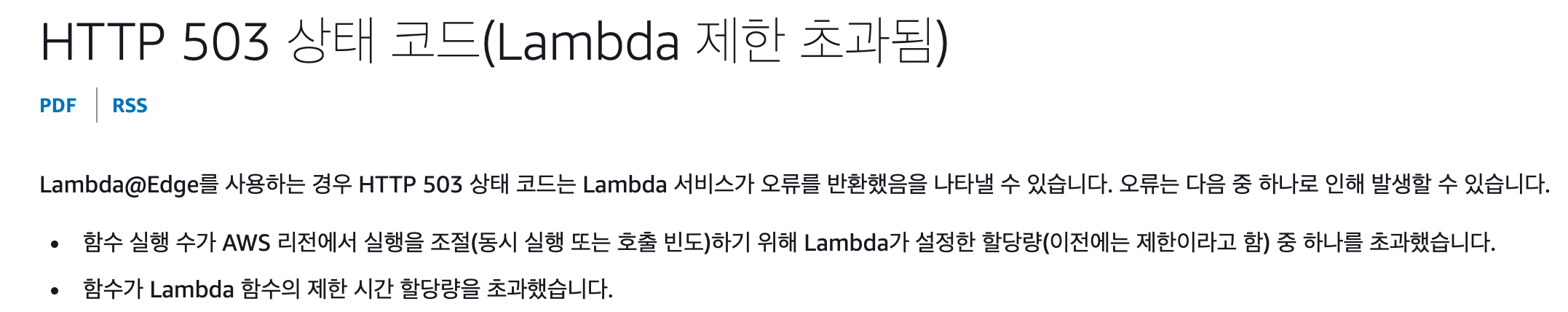 aws lambda 503 error 를 검색하자 이와같은 설명이 있었다.